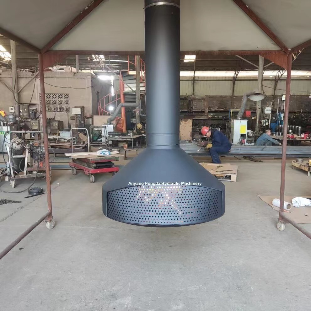 Caminetto sospeso da interno in acciaio al carbonio, montato a soffitto